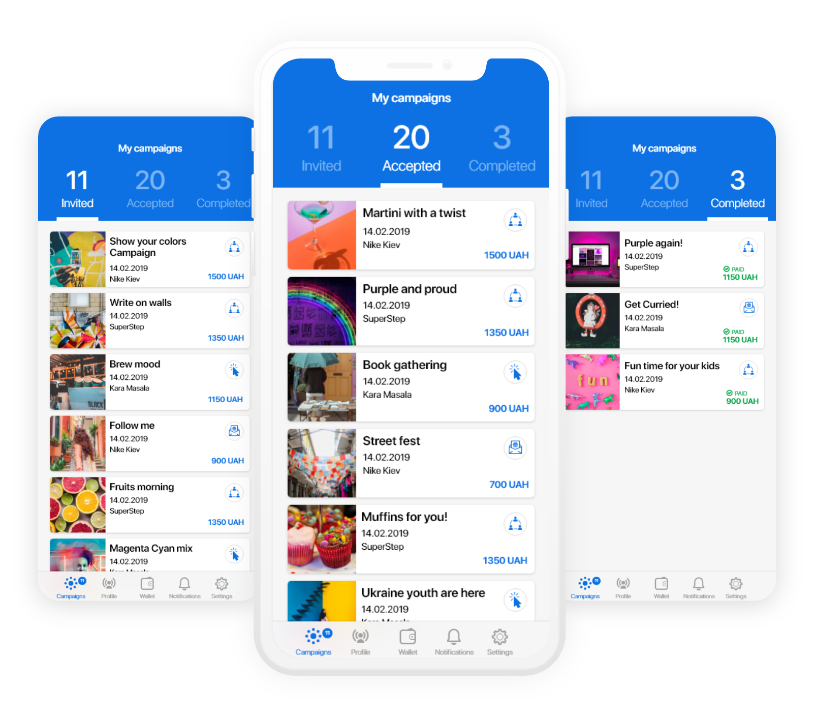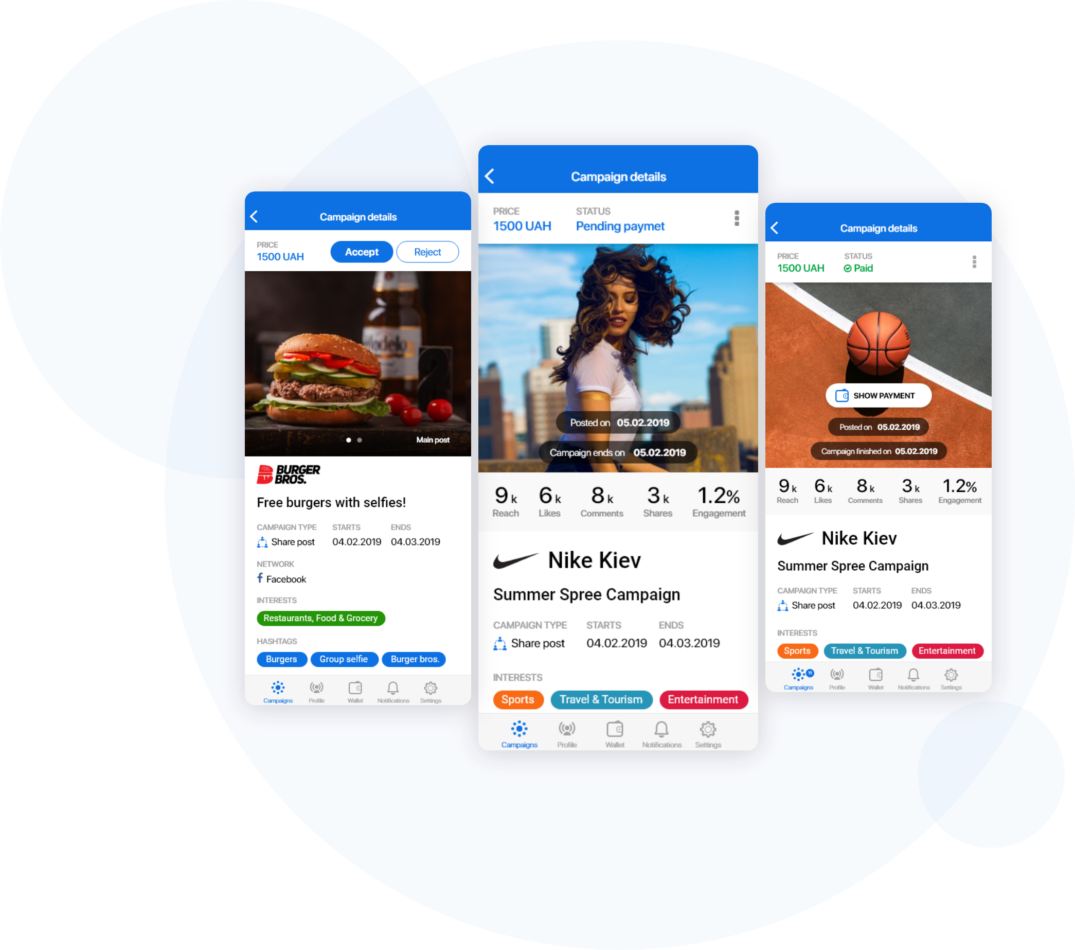Influencers will push notifications for latest updates about campaigns they participated.