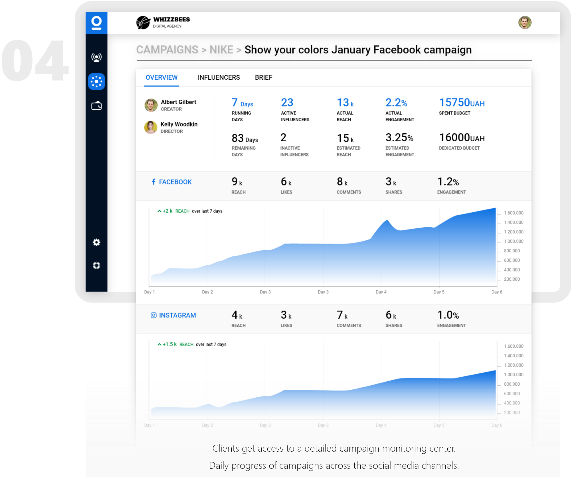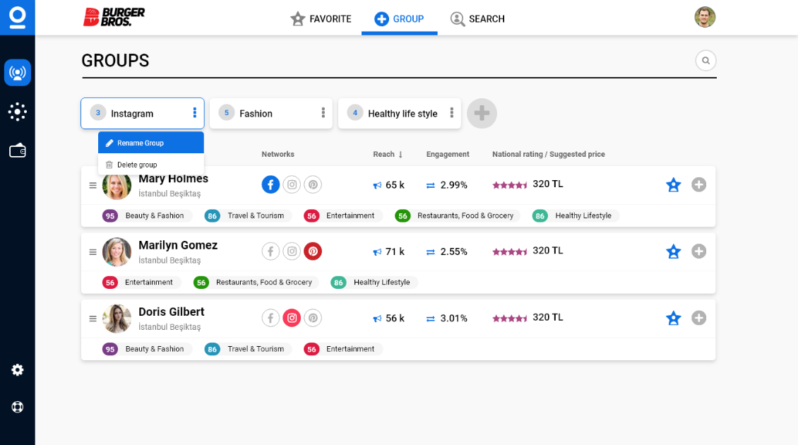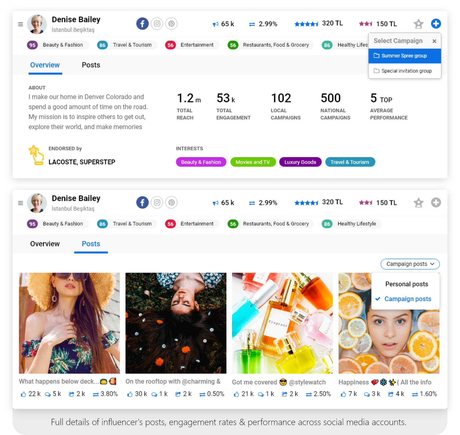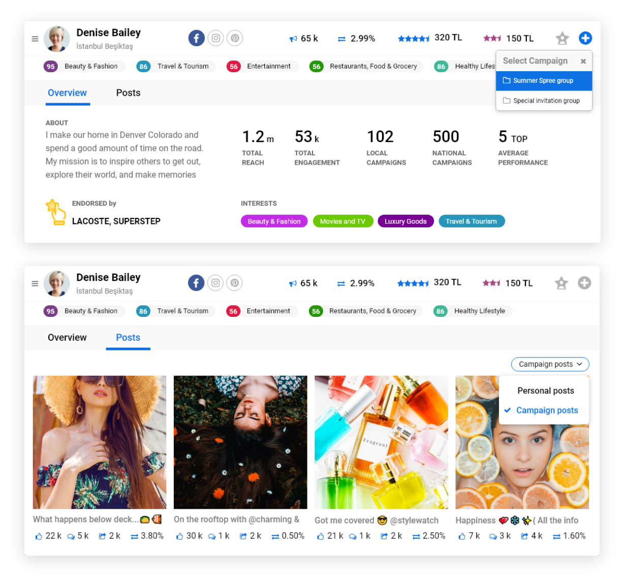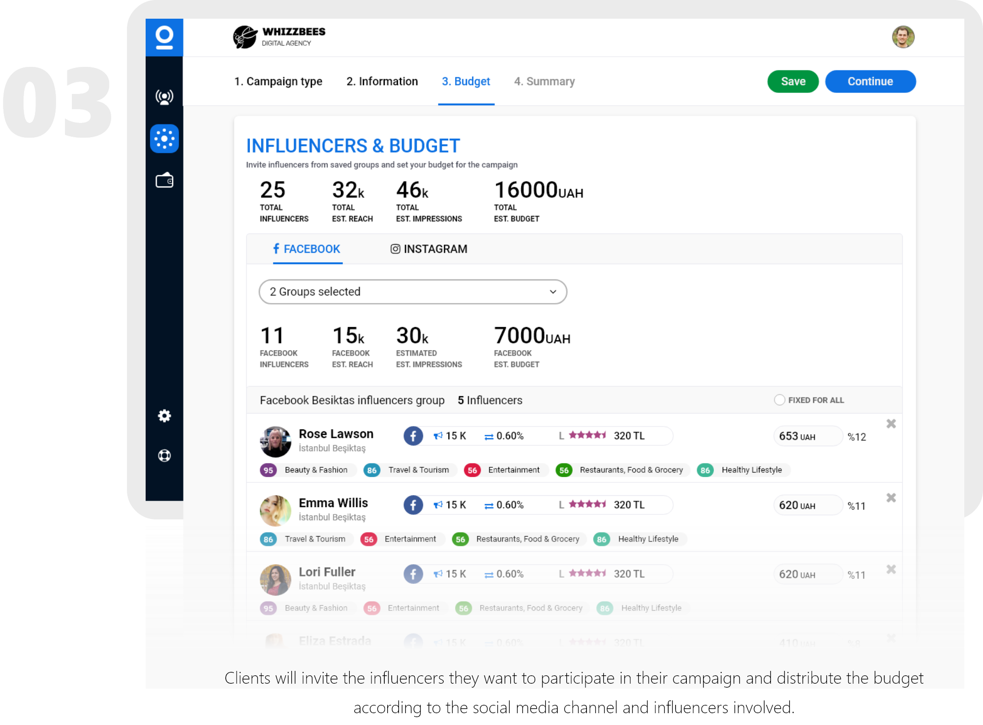 Clients will invite the influencers they want to participate in their campaign and distribute the budget according to the social media channel and influencers involved. Campaign monitering