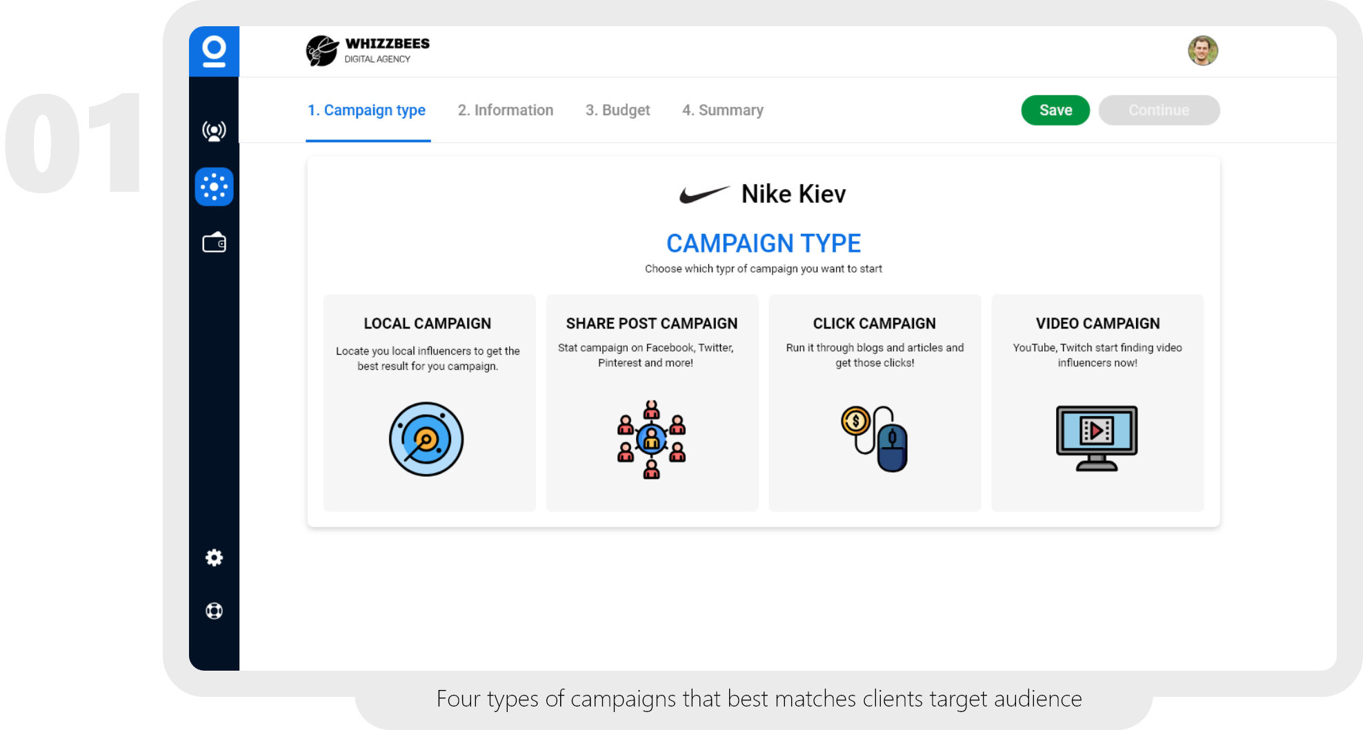 Four types of campaigns that best matches clients target audience Campaign Information