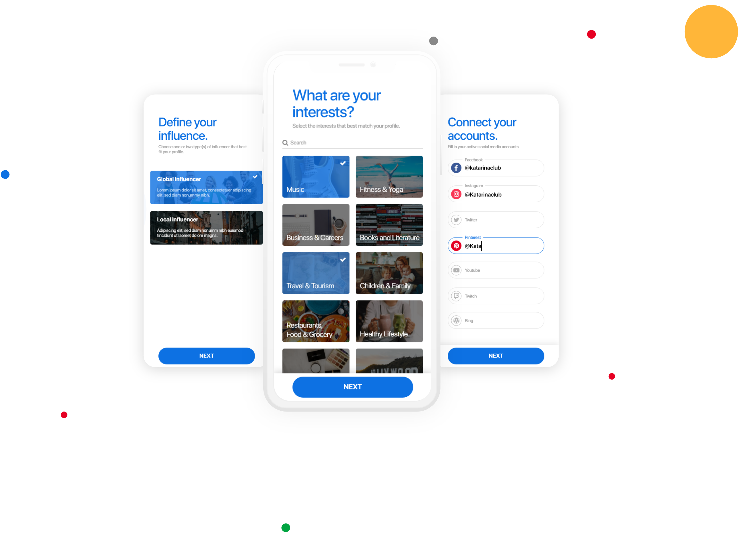 Influencers will define their interests and connect their social media accounts. After