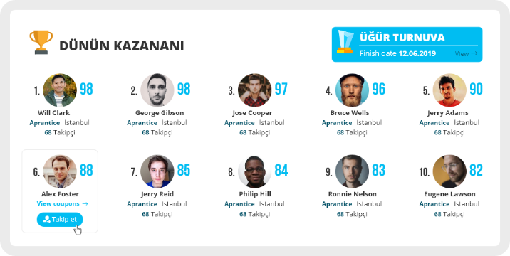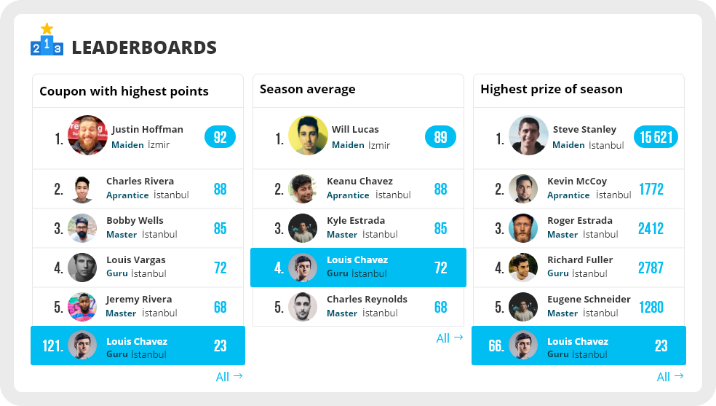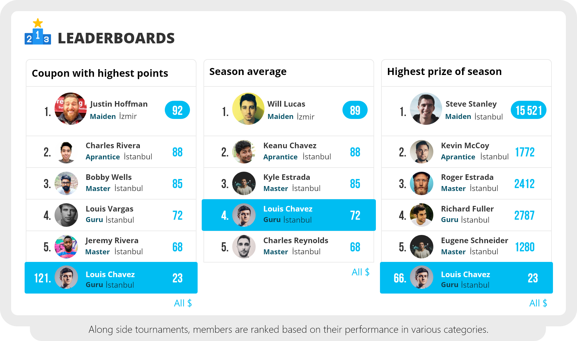 Along side tournaments, members are ranked based on their performance in various categories.