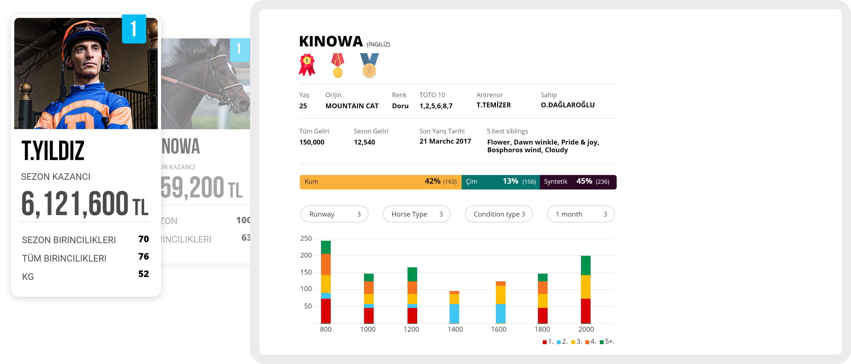 A comprehensive statistic page with most of information related to horses and jockeys, giving user full details and insight in a clear manner.