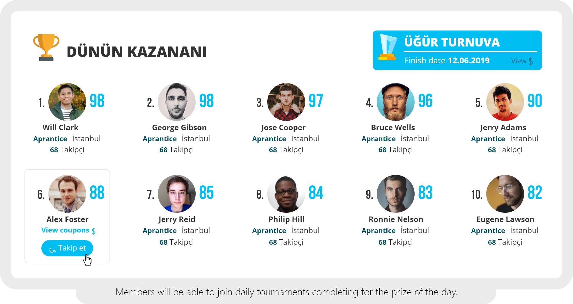 Members will be able to join daily tournaments completing for the prize of the day.