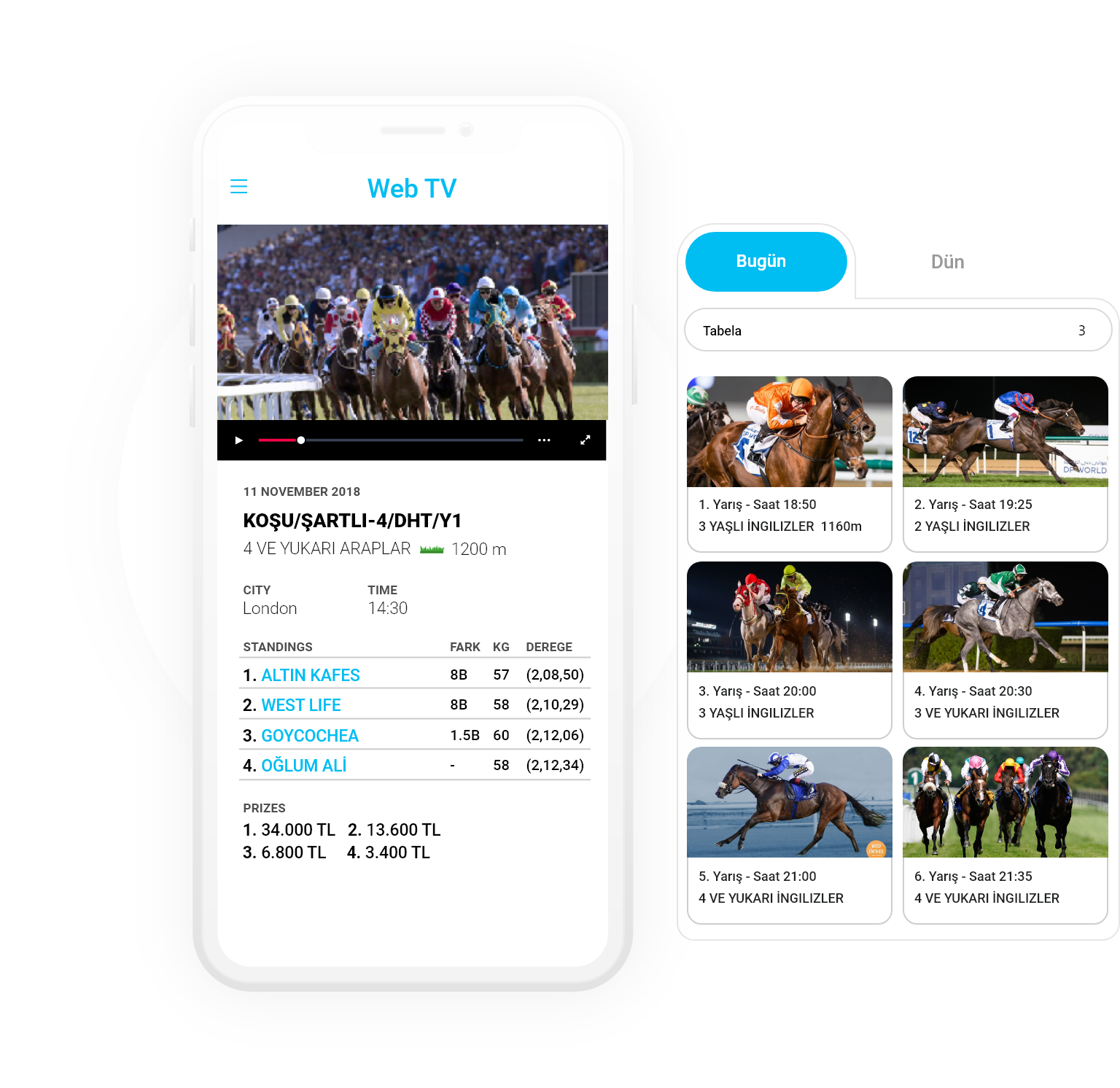 A dedicated TV web and application support showing all races video coverage.